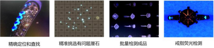 GLIS-3000珠宝发光成像分析仪,可以对批量厘钻、镶嵌钻石首饰进行快速判断和筛选,由于天然钻石与合成钻石的紫外荧光发光图样和磷光图样有明显的区别,该仪器内置光源激发钻石发光,拍摄和记录被测样品的荧光和磷光图像,再根据所记录的图像进行分析,找出有问题钻石的具体位置。其可测量任意形状和大小,最小可检测一厘(0.001克拉)的钻石。